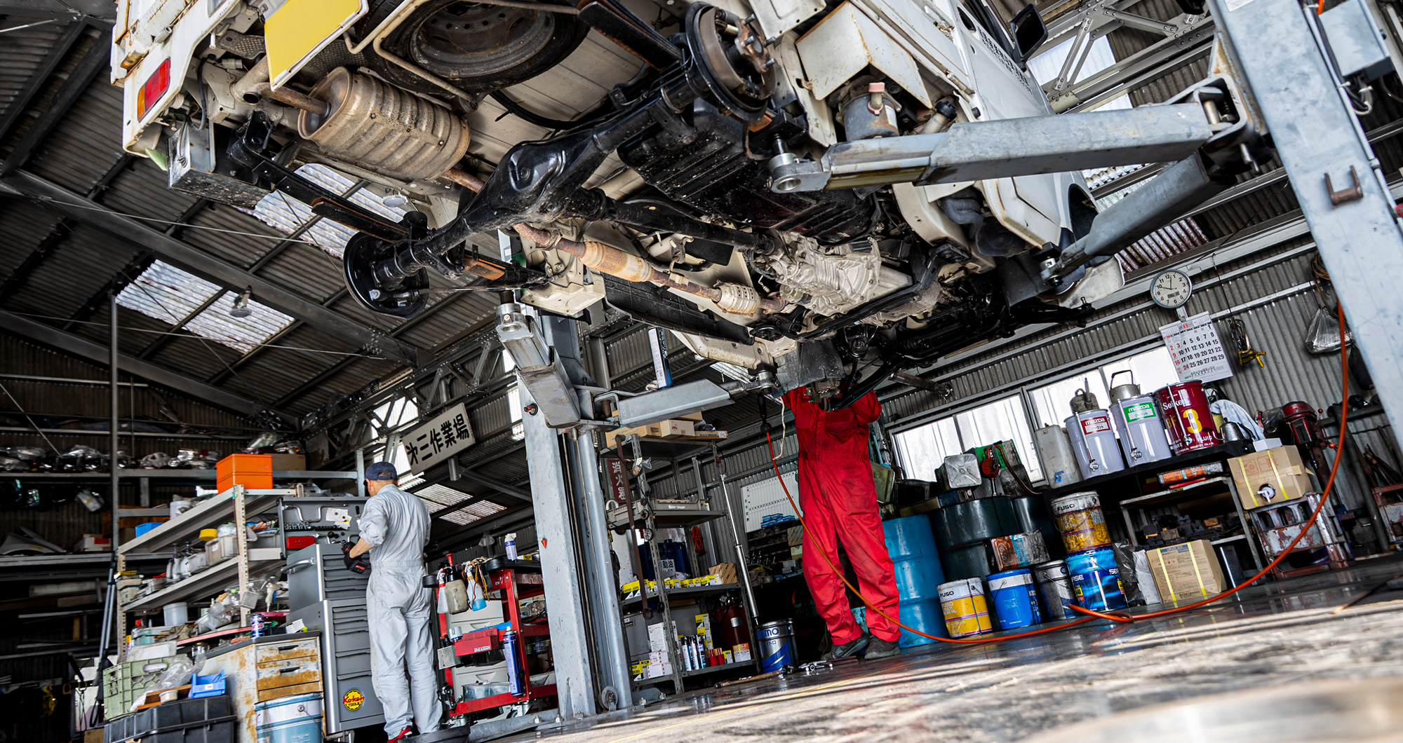 一般車両をはじめ、行政機関の公用車、消防車・救急車などの特殊車両のほか、軽自動車から大型トラックに至るまで幅広い車両の整備・修理・車検に対応しております。