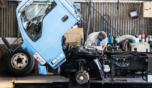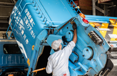 寺村光夫商事では、乗用車をはじめ、トラックやバス、消防車やパトカー、パッカー車などさまざまな車種の整備に携わることができます。